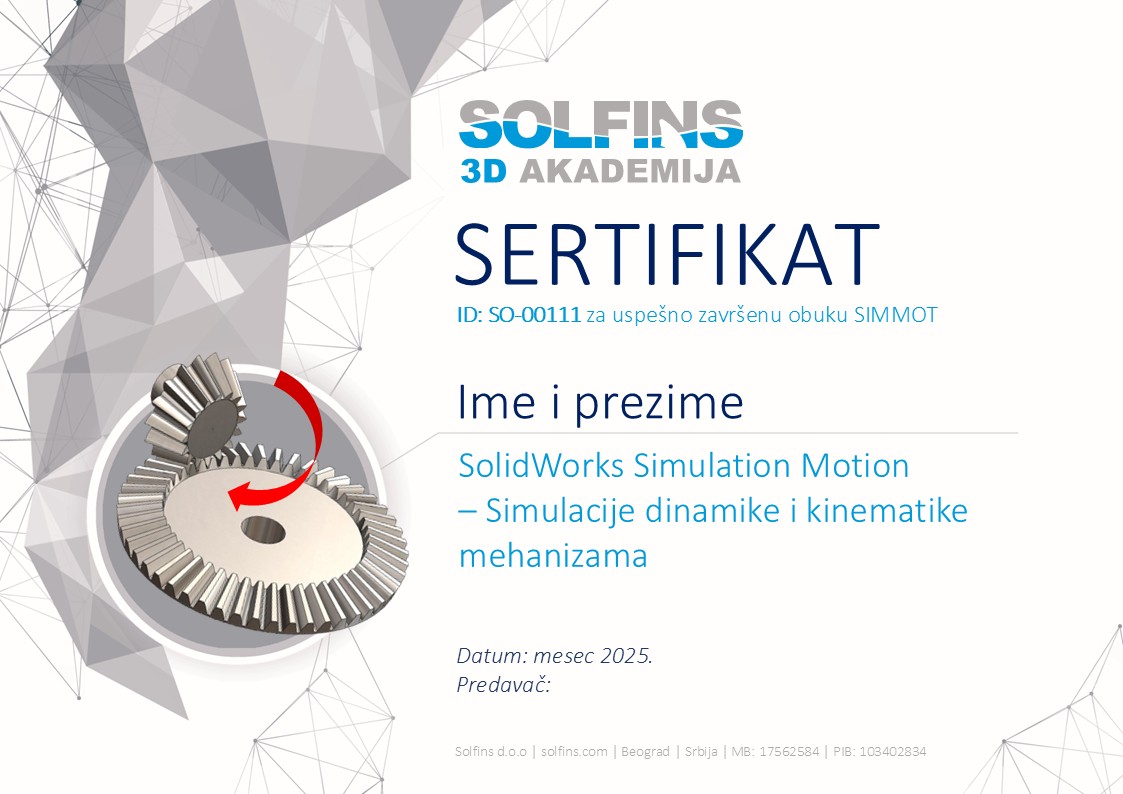 Obuka za SolidWorks Motion simulacije dinamike i kinematike mehanizama (SIMMOT)