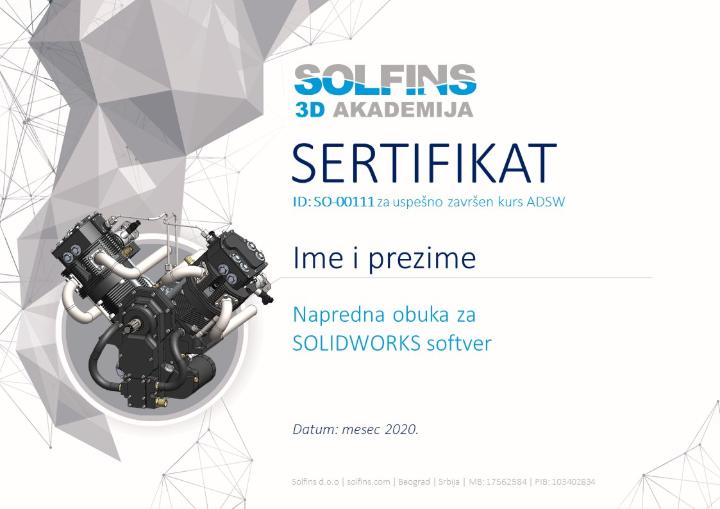 Kurs istovremeno predstavlja i pripremu za polaganje CSWP (Certified SolidWorks Professional) sertifikata.