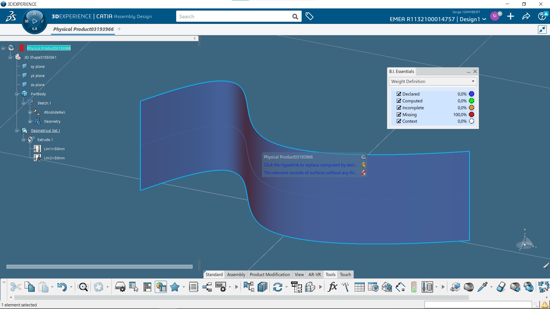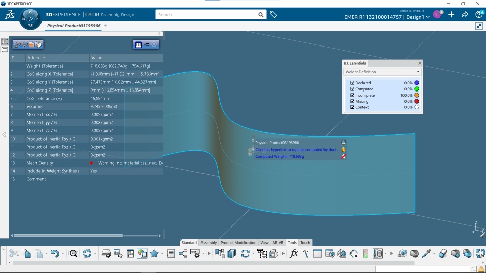 Compute weight of Surface Part - CATIA 3DEXPERIENCE