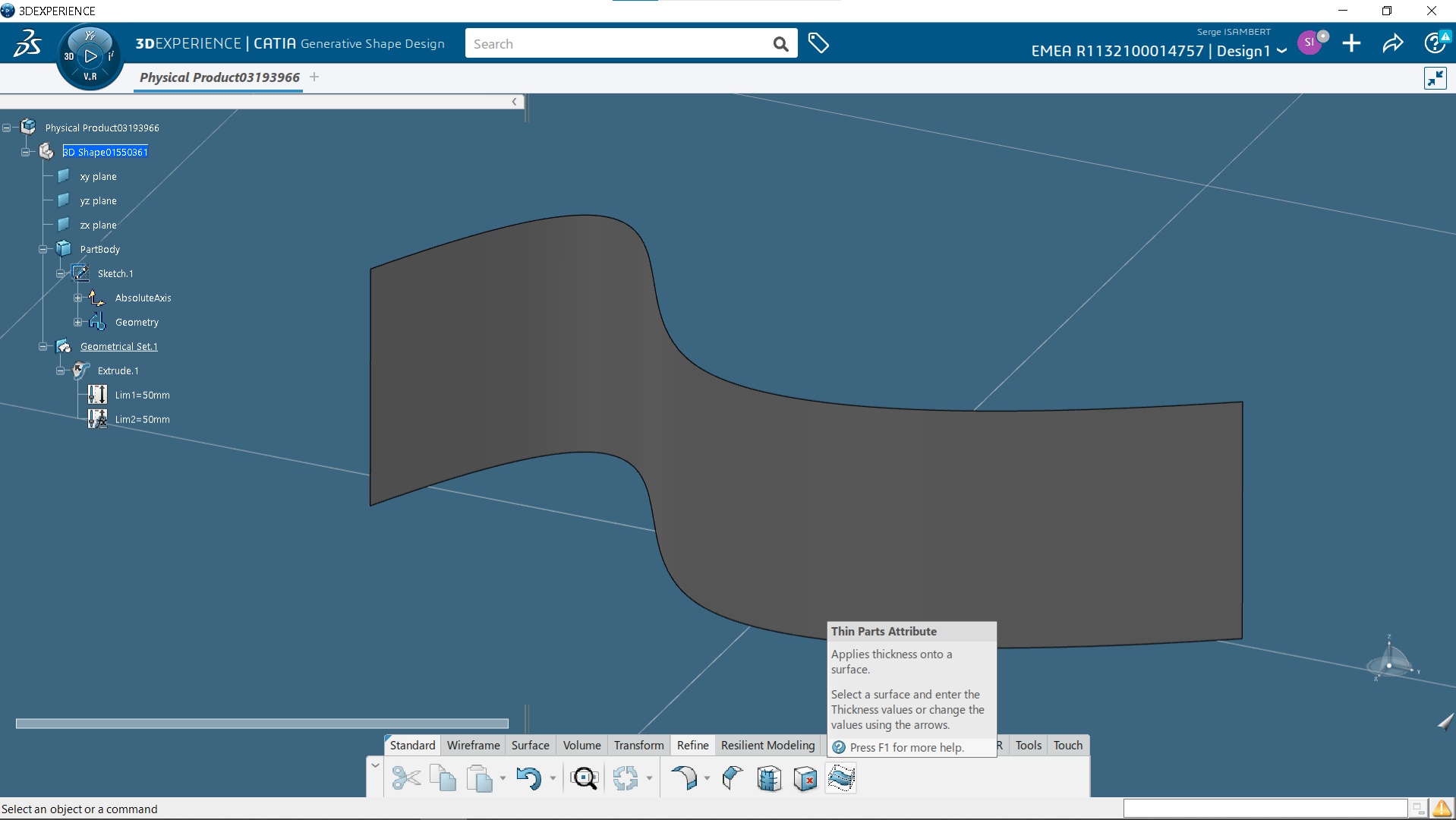 Ono što treba da se uradi u toj situaciji je da se definiše debljina površina sa Thin Part Attribute komandom iz Generative Shape Design App.