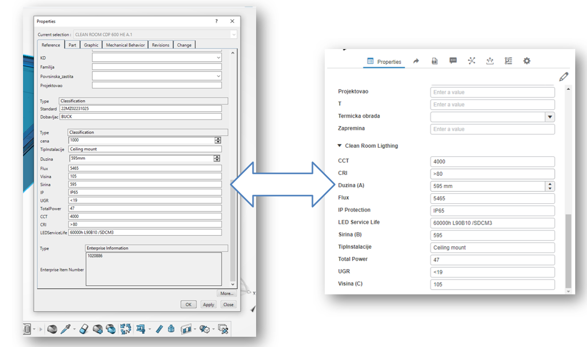 Atributi definisani u okviru Classification Manager aplikacije su vidljivi u CAD modelu, Drawingu, Projektima, Taskovima, Dokumentima...raznim objektima u 3DEXPERIENCE platformi kako u editor aplikaciji tako i u WEB-u.