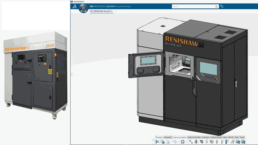Provides a collection of easy-to-use tools for the creation of both forward and inverse kinematic devices. Appropriate kinematic solvers are automatically assigned for revolute, prismatic, and other types of kinematic joints. Using a library of mathematical operators, users can easily create equations when modeling advanced devices.  They can jog individual joints or move the device’s Tool Center Point in 3D to validate the kinematic definition. Once the kinematics are defined, EMR has the unique capability to store the mapping of the kinematics in a template. This color-based mapping allows other users to apply the same kinematics to other mechanisms of the same type, with just a couple clicks. Machines are built either as a single controlled mechanical device, or as a group of devices being controlled as one to simulate the most complex machines.