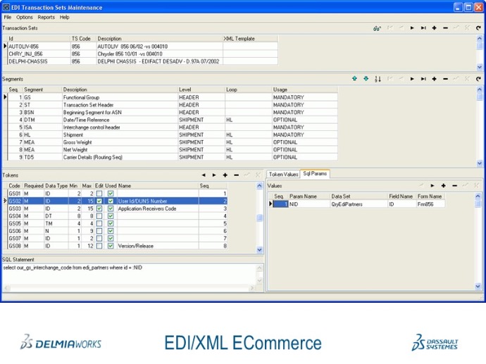 Za razliku od rešenja gde ERP šalje/uzima fajlove od eksternog EDI translatora, DelmiaWorks ima EDI/XML eCommerce modul direktno u okviru ERP platforme. Inbound fajlovi (forecast, releases, purchase orders, vendor schedules…) prevode se direktno u DelmiaWorks tabele – prodajne naloge, release‑ove, planove potražnje – a outbound fajlovi (ASN 856, fakture 810, order acknowledgments 855/865, remittance advice, vendor orders…) generišu se iz istih tih tabela u formatu koji traži trading partner. Modul podržava ANSI X12, EDIFACT, Odette, VDA, XML, CSV i razne flat‑file varijante (tekst, tab, custom), uz mogućnost rada i sa čistim Excel/CSV fajlovima za kupce/dobavljače koji nisu na „klasičnom“ EDI‑ju.