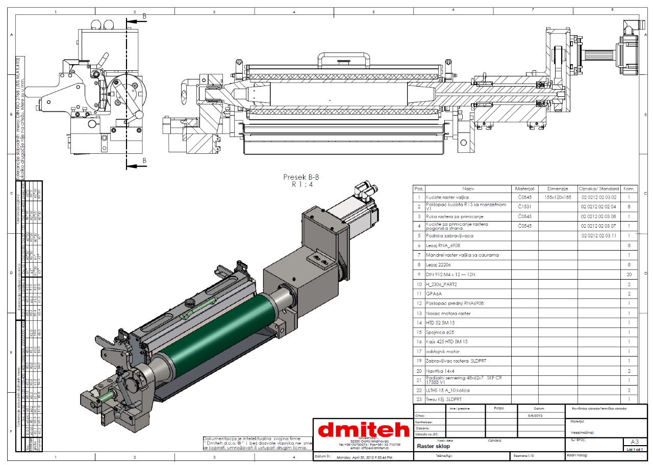 SolidWorks softver iskorišćen je za razvoj i kreiranje tehničke dokumentacije, kako za proizvodnju, tako i za montažu, održavanje i servisiranje mašina.