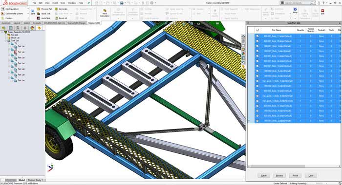 Delovi se mogu uvoziti pojedinačno ili u vidu sastavnica sa jediničnim količinama, gde SigmaNEST može da prati kompletne proizvode sa svojim sastavnicama. Delovi se sortiraju prema kvalitetu (tipu), debljini materijala i jediničnoj količinu koja se preuzima iz sastavnice. Pametni CAD import automatski proračunava proizvodnu cenu i ciklusna vremena za sečenje i savijanje.