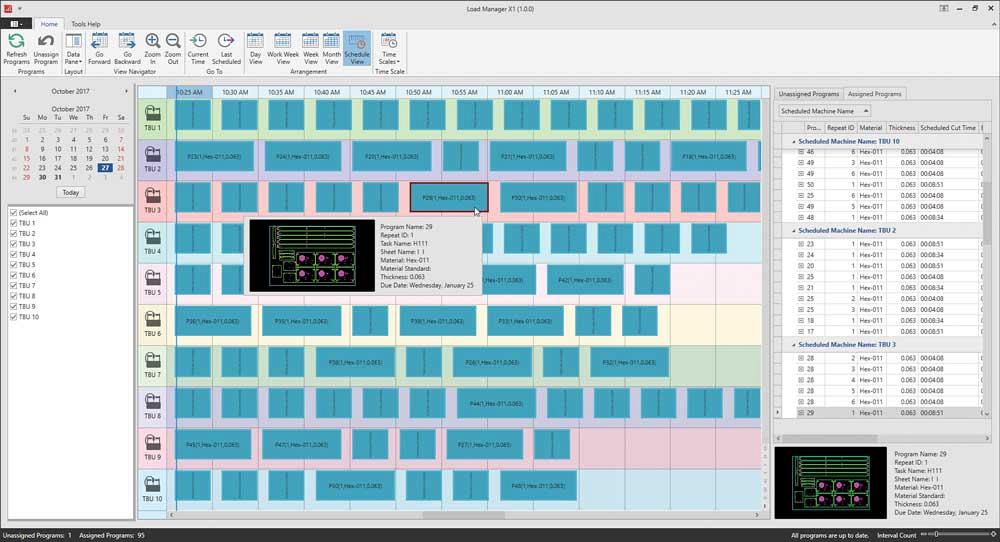 Za ovu namenu se koristi aplikacija Load Manager koja podržava sve Sigmine aplikacije za sečenje SigmaNest, SigmaTube i SigmaCTL. To znači da će programi i poslovi biti prebačeni na mašine i da će softver voditi računa da sve mašine budu podjednako opterećene.