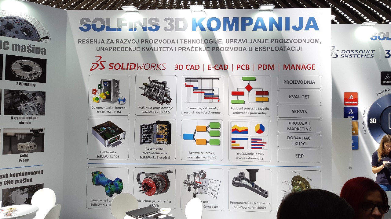 Solfins je na 63. Sajmu tehnike, u Beogradu, od 21. do 24. maja 2019. godine, predstavio najpopularnija softverska rešenja u srpskim firmama iz oblasti razvoja i proizvodnje, novine u softverima, 3D štampu i 3D skeniranje...
