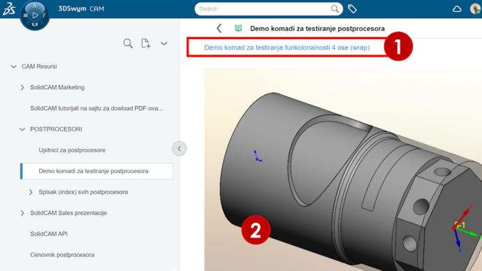 2 - Primer jedne Wiki stranice sa uploadovanom kompletnom SolidCAM knjigom - otvaranje celog PDF dokumenta na stralici (Play - isto kao kod video sadržaja)