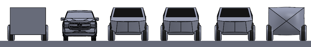 Da bi analiza bila što preciznija pronađen je i originalni 3D model konkurentskog proizvođača (Chevy Silverado) sa kojim će se Tesla Cybertruck nadmetati u simulacijama aerodinamičnosti.