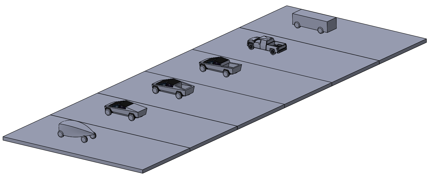 Uz tri Tesla varijante i jednog konkurenta dodata su i dva ekstrema u vidu kubičnog vozila, i vozila nalik "obrnutoj" raketi (oba jednakih gabarita).