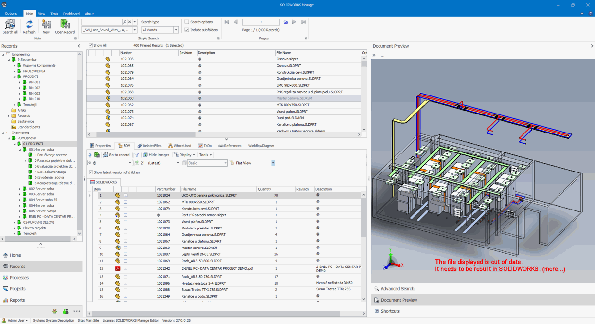 Projekat razrade dokumentacije DATA CENTRA u SolidWorks softveru