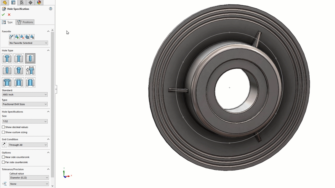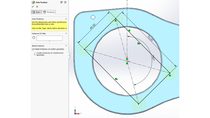 Moguće je umesto postavljanja tačaka, da se izabere postojeća skica za definisanje pozicija Hole Wizard-a.