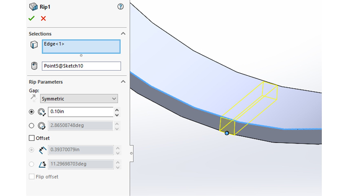 Moguće je koristiti komandu Rip za tankozidne cilindrične i konične delove.