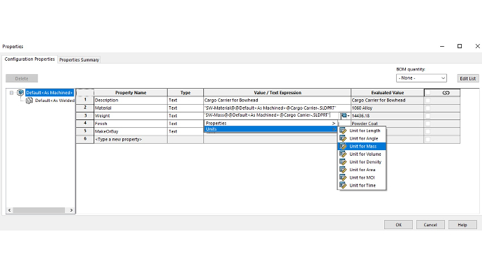 Definisanje jedinica mera kod atributa u Custom Properties i Cut Lists.