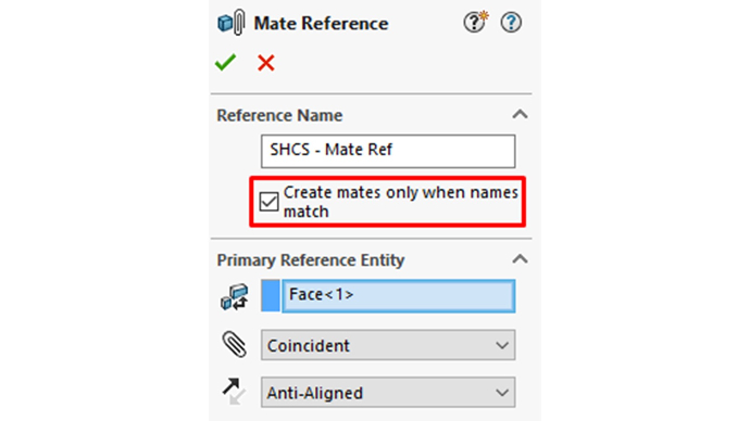 Komponente se mogu mate-ovati samo ako unutar Mate Reference komande imaju ista imena.
