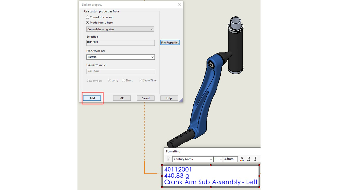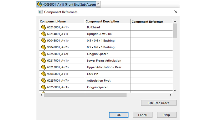 Pomoću Component Reference opcije na nivou celog sklopa, moguće je dodati dodatne informacije, a da se tiču komponenti u datom sklopu.