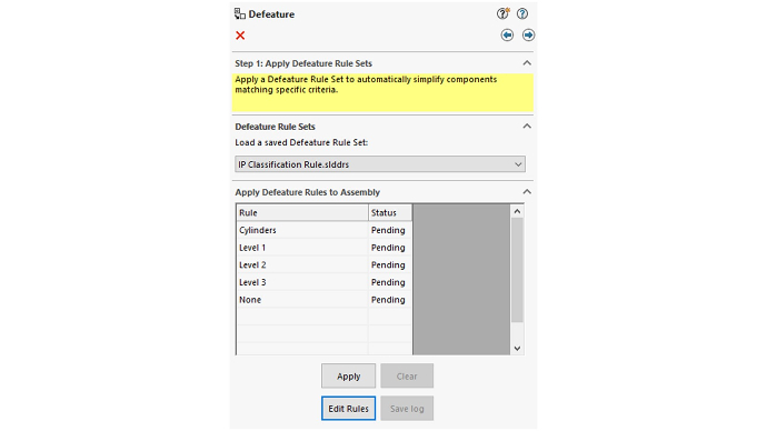 Moguće je definisati pravila po kojim će se Defeature komanda izvršavati.