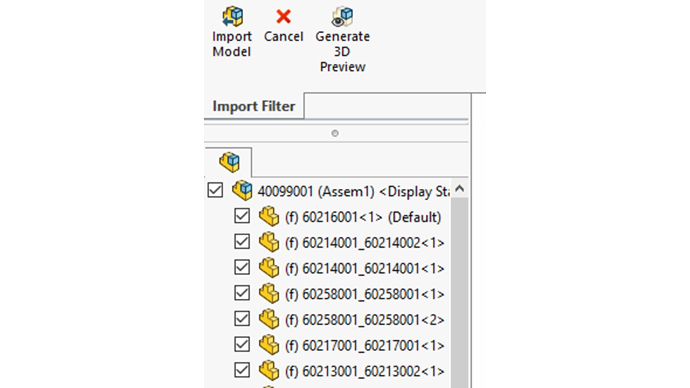 Filter radi učitavanja pojedinih komponenti iz STEP fajla.
