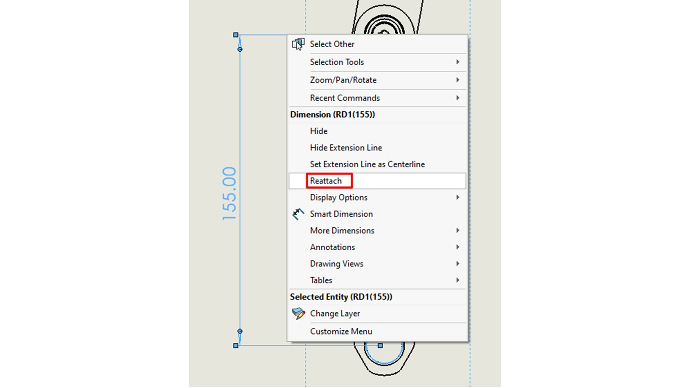 Mogućnost prikaza kote, koja je ručno prepravljena, pomoću druge boje.