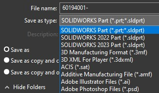Čuvanje delova u SolidWorks verzijama 2022 i 2023. Dostupno za licence, koje su na godišnjem održavanju.