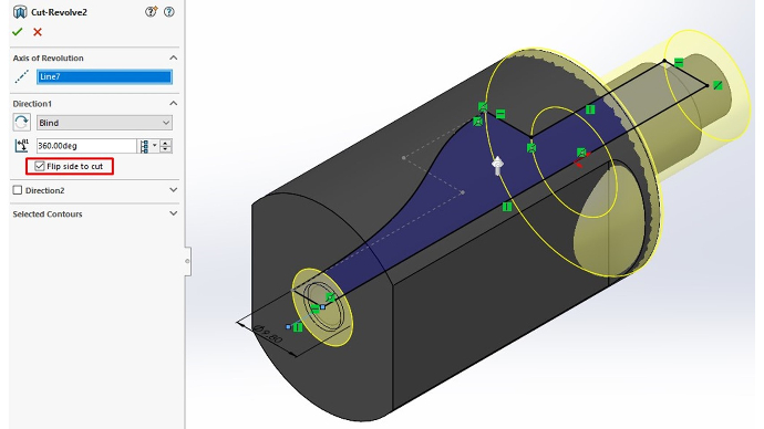 Sada postoji mogućnost da se štiklira opcija "Flip side to cut" za komandu Revolved Cut.