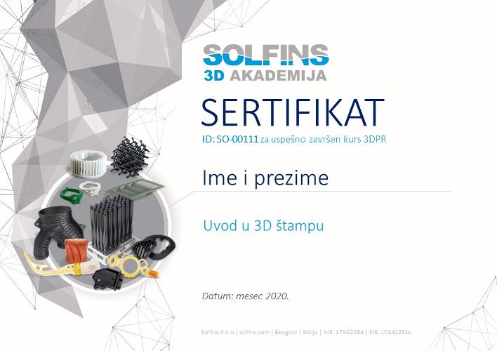 Provedite dan u Solfins 3D Laboratoriji sa naših inženjerima i operaterima 3D štampača. Upoznajte se sa tehnologijama 3D štampe, shvatite potencijale i ograničenja, otkrijte pravo rešenje za vaše potrebe.